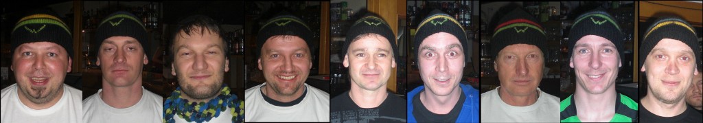 1. GM Sektion Kegeln, 2. Hr. Professor, 3. Knalli, 4. Eisal, 5. Peck, 6. Peppo, 7. Präsi, 8.Häsal